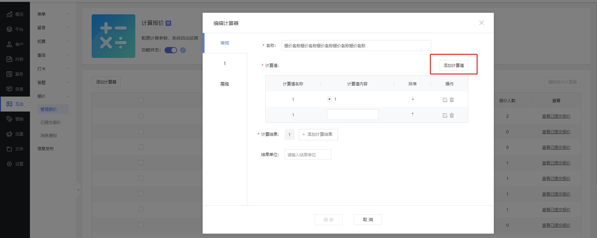 为满足客户更多计算值的需求,针对计算报价-添加计算值数量上调