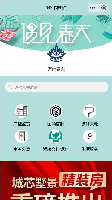 一一今天呢,就给大家介绍一个特别实用的小程序,来自“万绿春天”房产项目的小程序,这个小程序可是用凡科轻站制作的哦。咱们先来看看这个小程序都有啥。