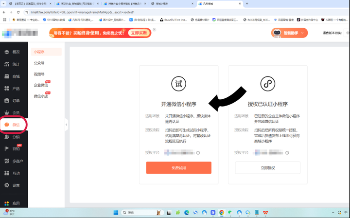 我用的是(小程序制作直达 >>点击制作)这个网站(直接网页搜就行),打开首页,看到顶部有「商城小程序」点进去。
