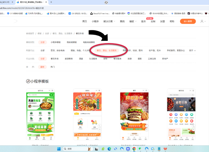 页面出来一堆行业模板,直接在上方筛选那里点 「餐饮/外卖」。