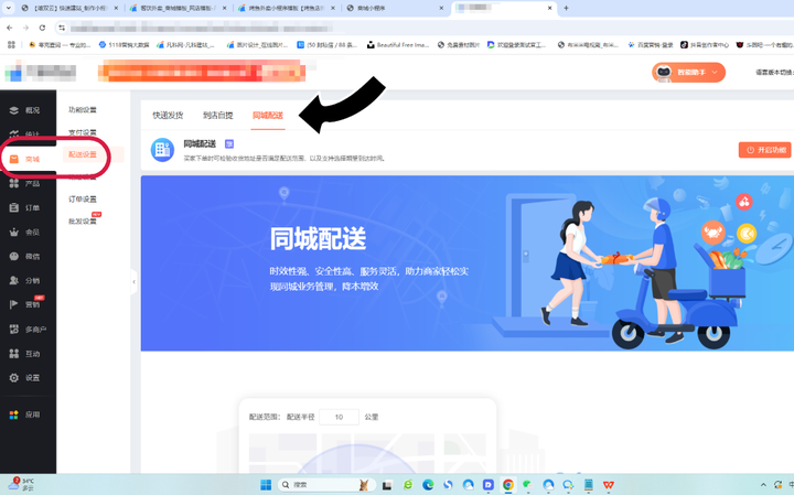 在后台左侧菜单里找到 「配送设置」,点开选 「同城配送」:
