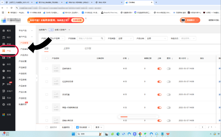 点「添加产品」,给我的“秘制酸辣粉”拍个美照传上去,写好名字和单价!