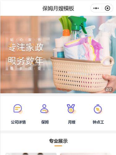 注册后直接选“家政服务”类模板,首页自动带服务预约入口、价目表模块