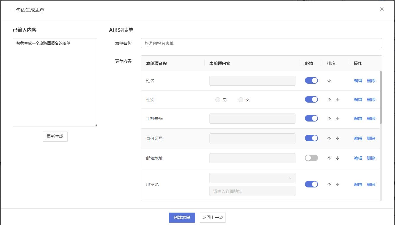 一句话描述或上传一个图片,AI可帮你创建完整表单