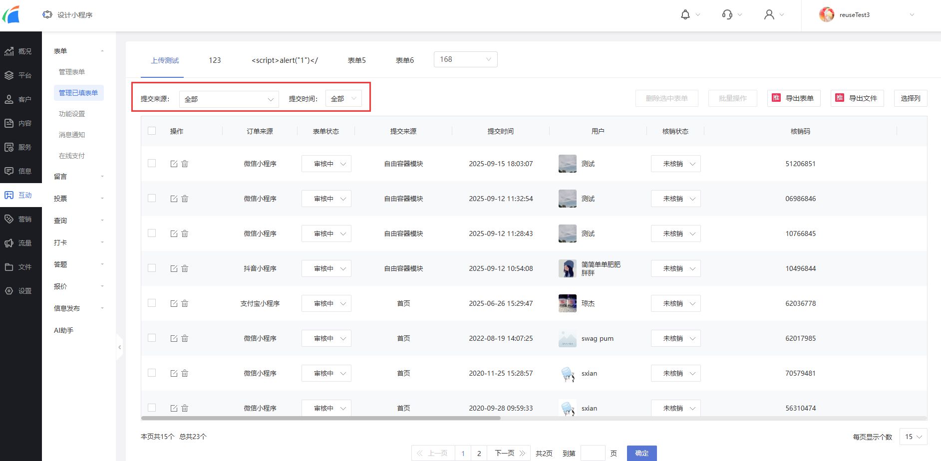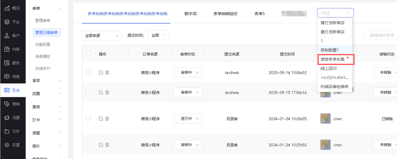 2.3 表单收到新提交记录时,表单名称右侧会展示红点,提醒管理员查看。