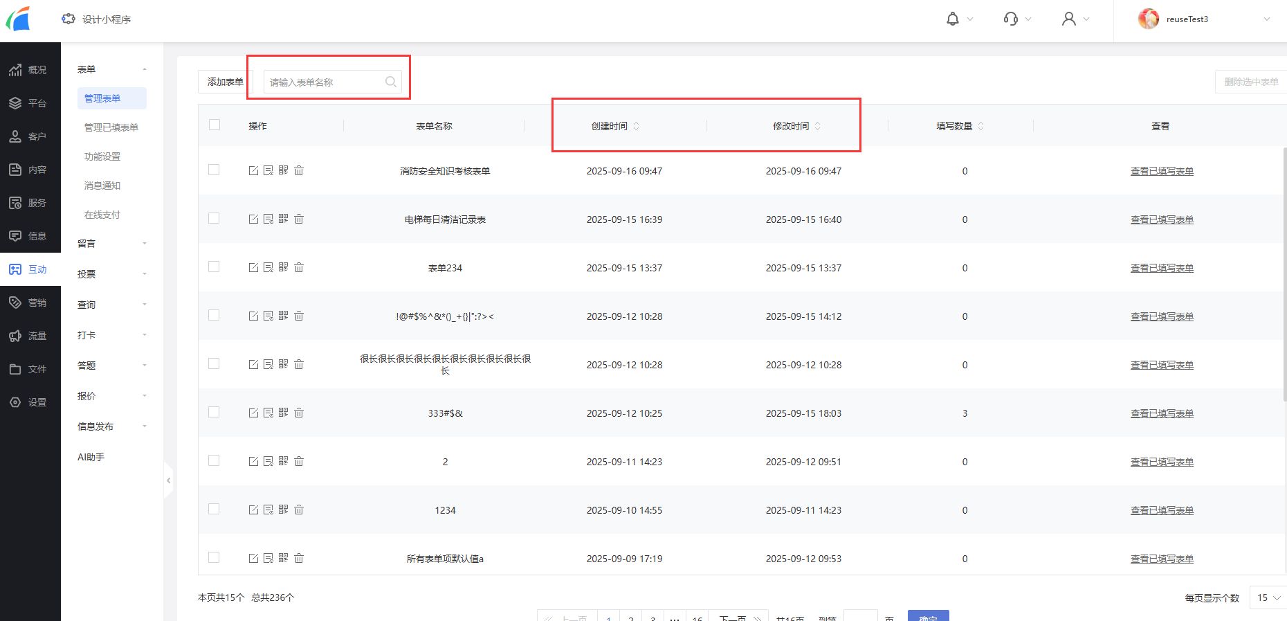 2.1 表单管理 新增支持名称搜索、创建时间排序、修改时间排序