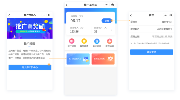 系统自动计算佣金,支持通过微信、支付宝等方式线上发放,省去人工核算的麻烦。