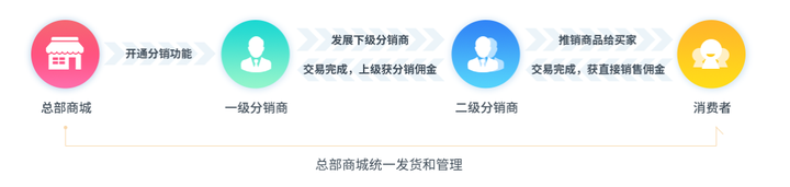 当品牌做到一定规模,商城品牌的拥有者不仅可以发展分销商,各级分销商可以进一步发展二级分销商,谁卖谁拿提成。