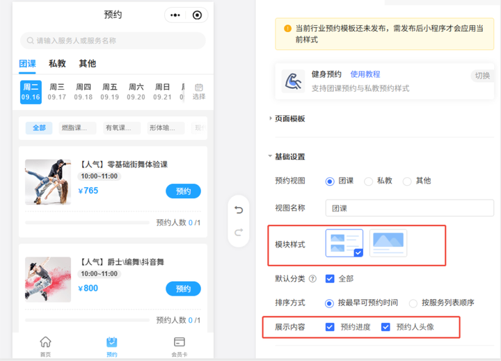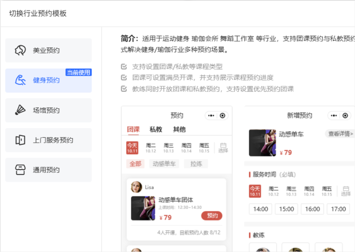 你还可以自定义预约页的样式,比如突出显示团课表、私教介绍等,让页面更清晰、更符合品牌风格。