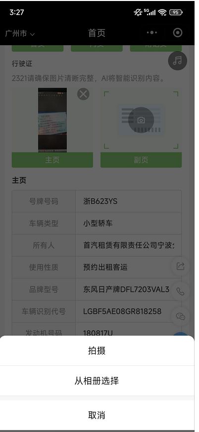 3、用户可选择拍照或上传相册图片。且AI识别证件后,会识别字段到表格中,用户对表格内容还可做自定义修改。