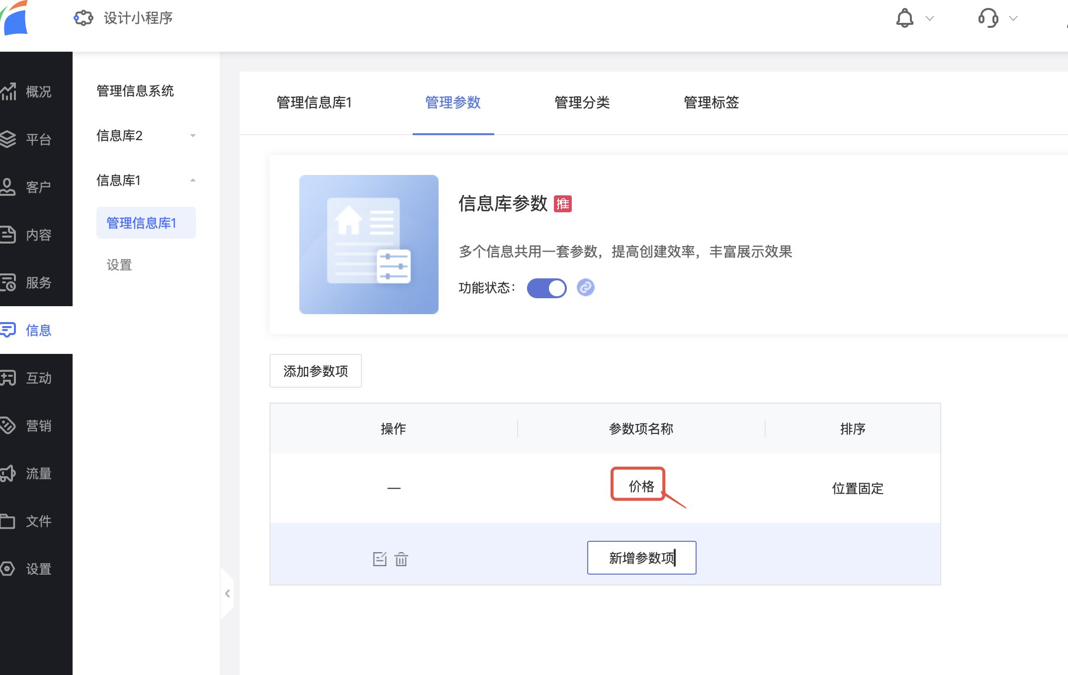 进入信息库管理后台,双击可以对原来系统参数进行改名