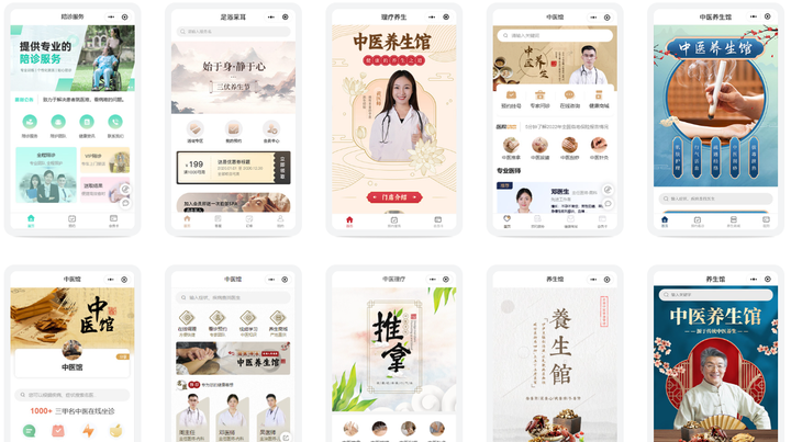 模板的设计会考虑中医养生的特点,配上简洁的药材插画或针灸图等元素,整体看起来素雅舒服,让人感觉放松。用户打开小程序,能感受到养生的氛围。