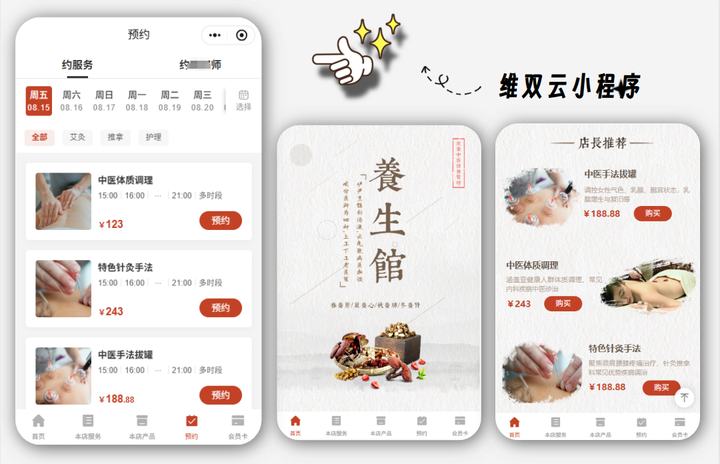 顾客通过手机上的小程序能随时预约项目、了解养生知识,养生馆在后台通过会员系统可以轻松管理顾客信息、灵活安排服务,运作起来效率更高。