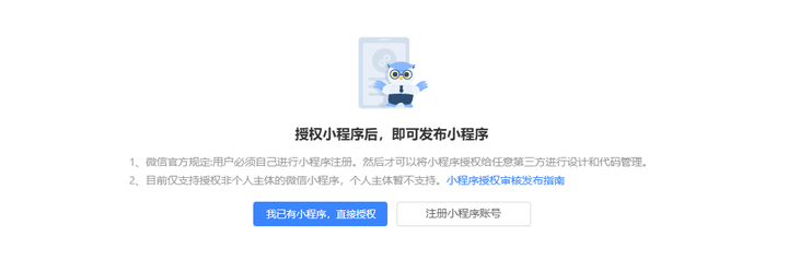 需将你在第一步中注册的小程序账号授权给制作平台,待微信审核通过后,小程序就能正式上线,被用户搜索或扫码访问。