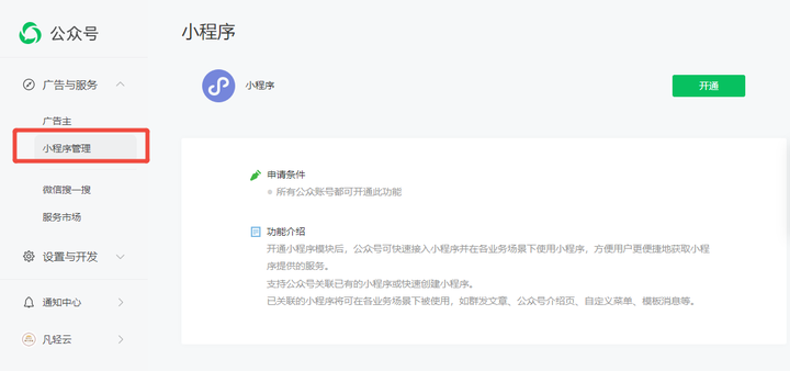 注册后,你还可以将小程序与公众号绑定,实现菜单跳转、文章内嵌、消息通知等多场景连接,打通内容与服务。