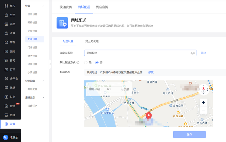 ⑤订单与配送设置: