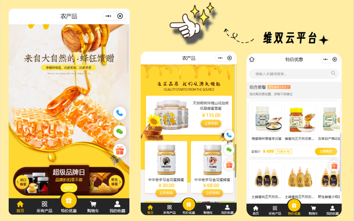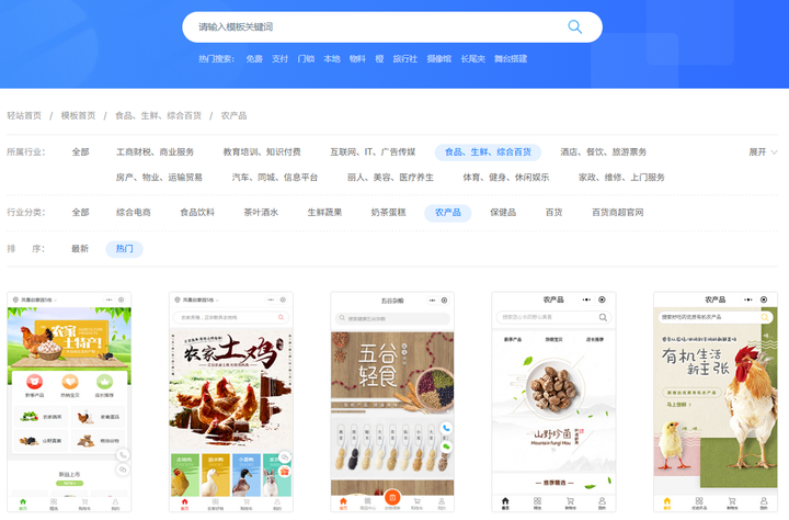 然后,朋友推给了我他做小程序模板的那个平台,就是维双云网站,进去一看,里面有好多不同行业但现成的“样板间”,我挑了个卖土特产的小程序模板。