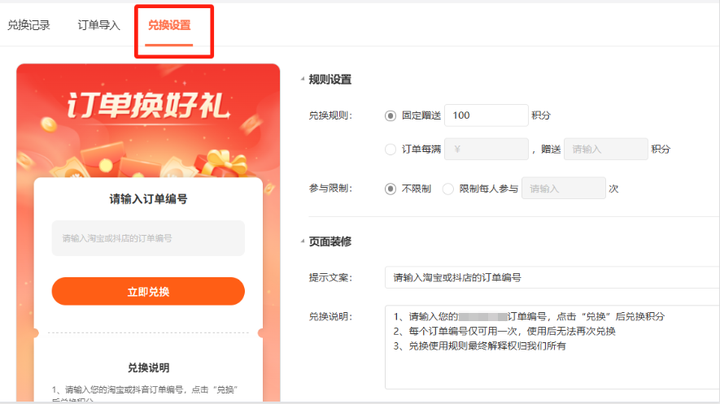 功能开了之后,得定好“顾客用订单换积分”的规则: