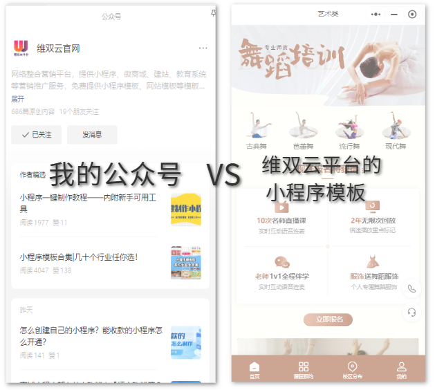 主要提供的是小程序模板和后台搭建服务,顾名思义,这种小程序模板已经完成了基本的页面设计,可以直接套用!