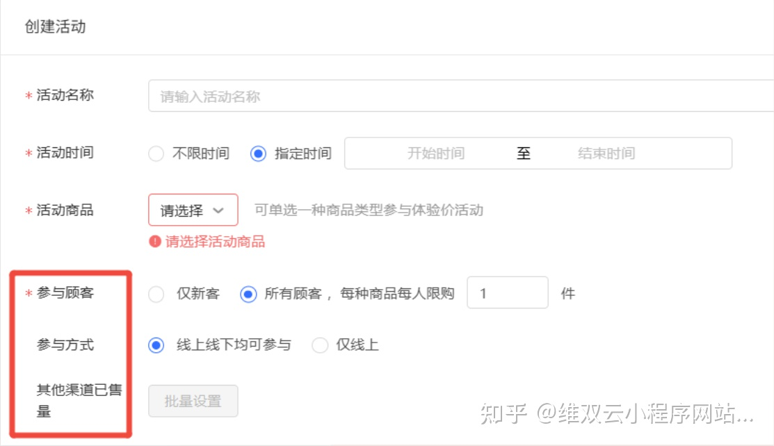 ·参与方式:选“仅线上”,顾客只能在小程序下单;选“线上线下均可”,线下到店也能享受,覆盖的顾客更多。