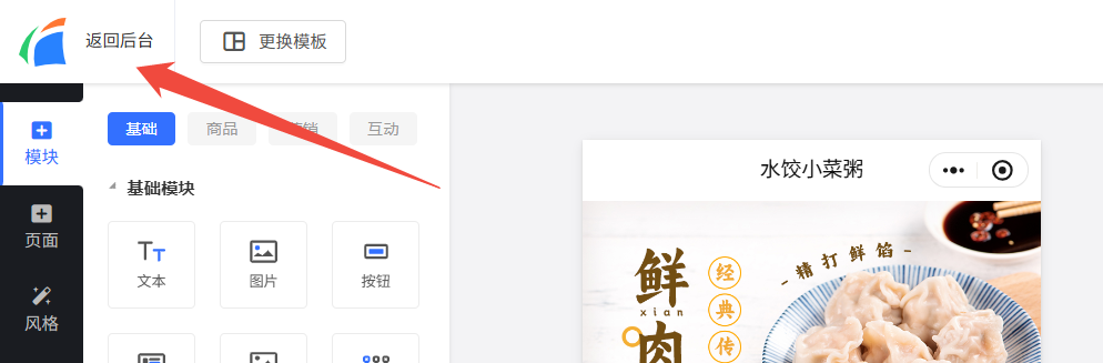 店铺装修点来就是这样的,这就是可以改你的小程序模板的地方,包括文案、图片以及增加或者删掉小程序模板上的功能模块。