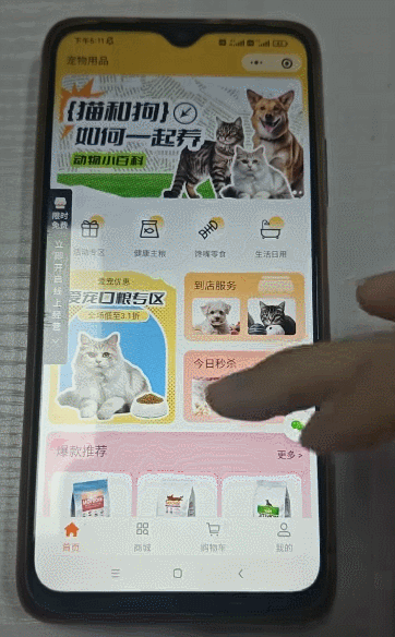 商品橱窗:完整的商品分类、详情页(图文/视频)、规格选择与库存展示。