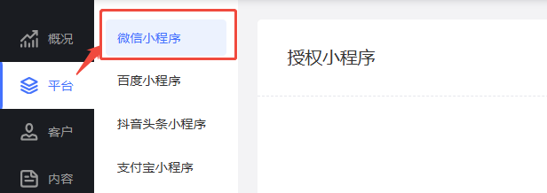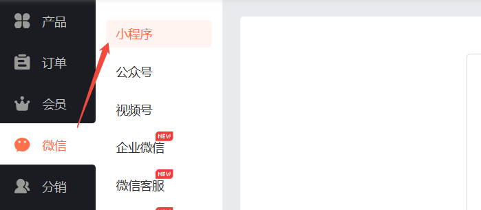 商城类:在后台点击【微信】-【小程序】-【开通微信小程序】,按步骤操作。