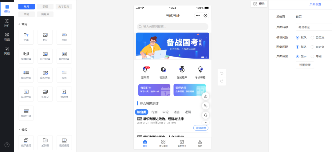 适合专门开设线上课程、以及售卖教材或教具的机构。核心模块包括: