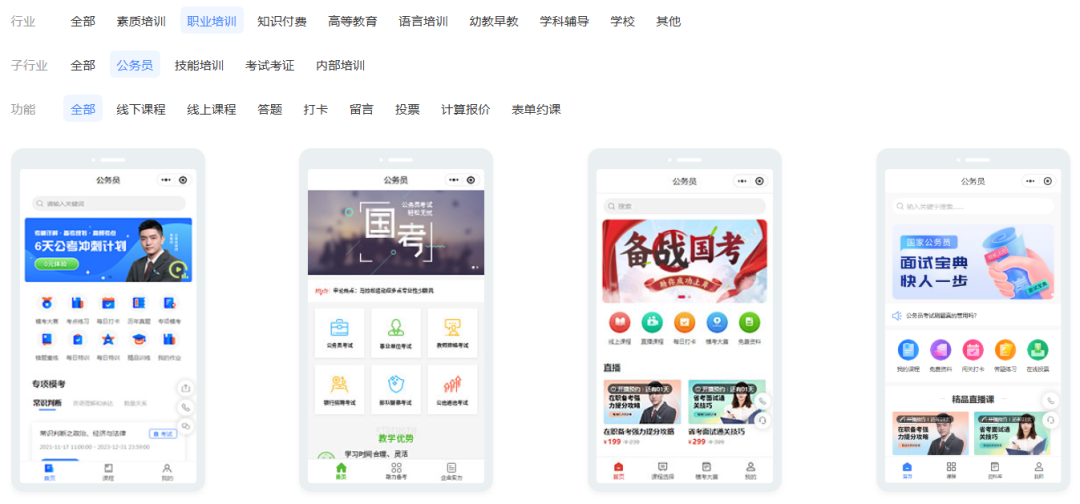 适合以课程展示、品牌宣传、预约试听为主的教培机构。核心模块包括:
