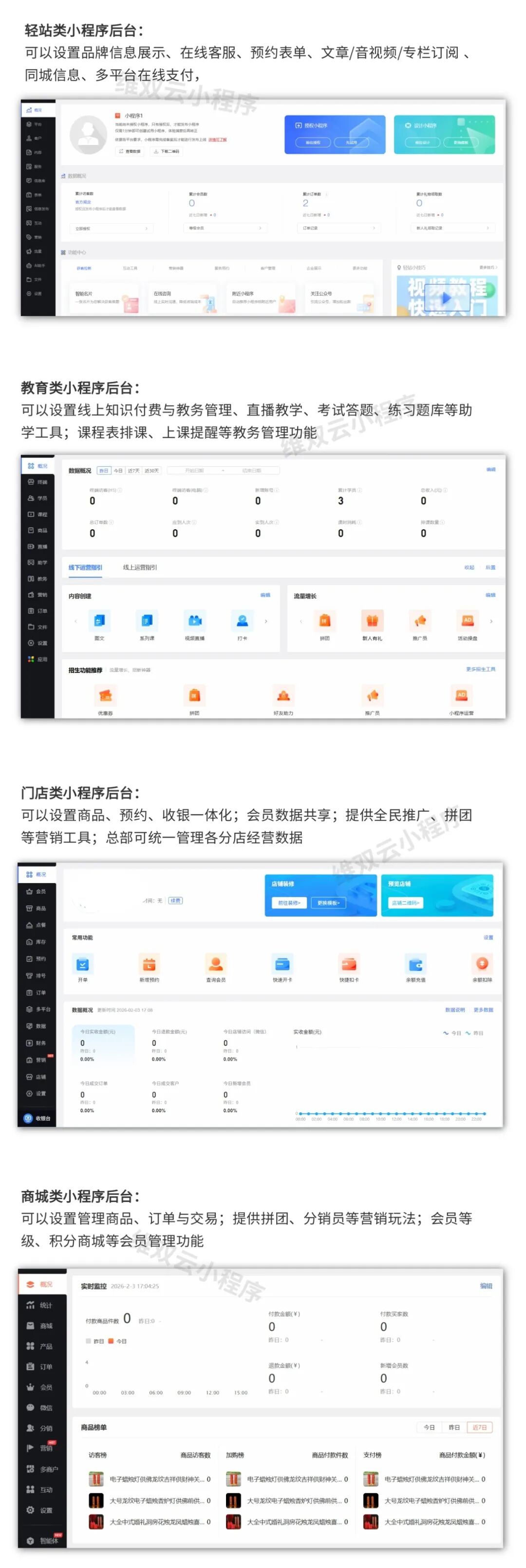 市面上比较常见的一类工具叫SaaS小程序平台,以咱维双云平台为例,工具使用的核心思路就是:选一个现成的小程序模板,然后换成你自己的装修和功能