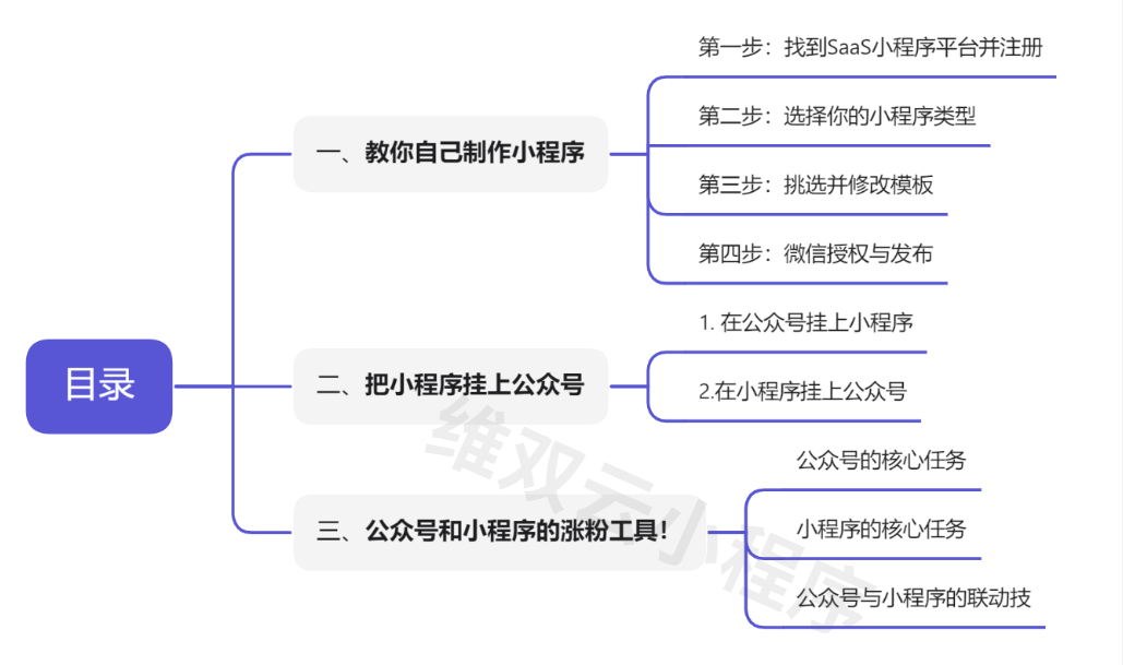 咱们本篇讲的是微信端的小程序制作嘛,而微信其实还有一种工具——公众号,可以和小程序打配合,一个负责涨粉,一个负责转化付费,留存新客!