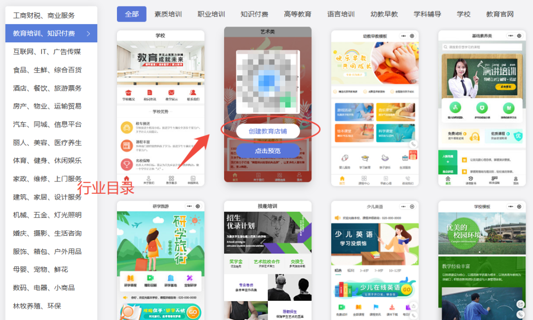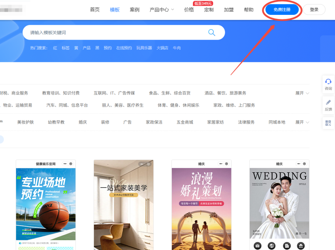 进入官网后,找到【点此】小程序制作,选一个类型点进去,你就能看见我们的小程序模板库啦!
