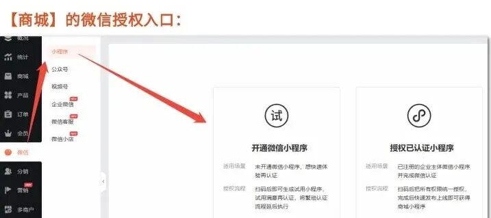店铺装修得漂漂亮亮,最后一步就是挂上招牌,开门迎客。这需要完成微信的授权与发布: