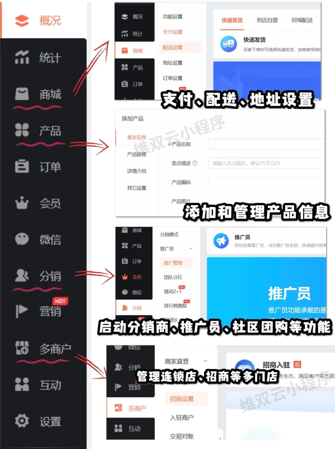 优惠券、拼团/秒杀、分销推广等。