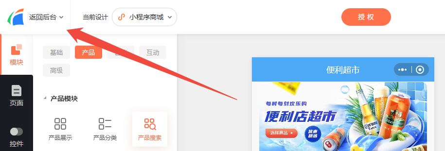 完成后,我们来到左上角这里,点【返回后台】