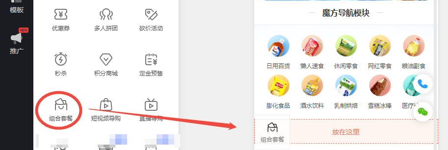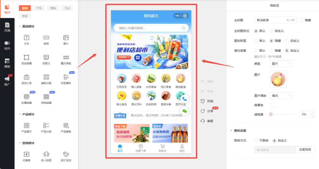 ·如果核心是在线卖货,开个商城,选【商城】。