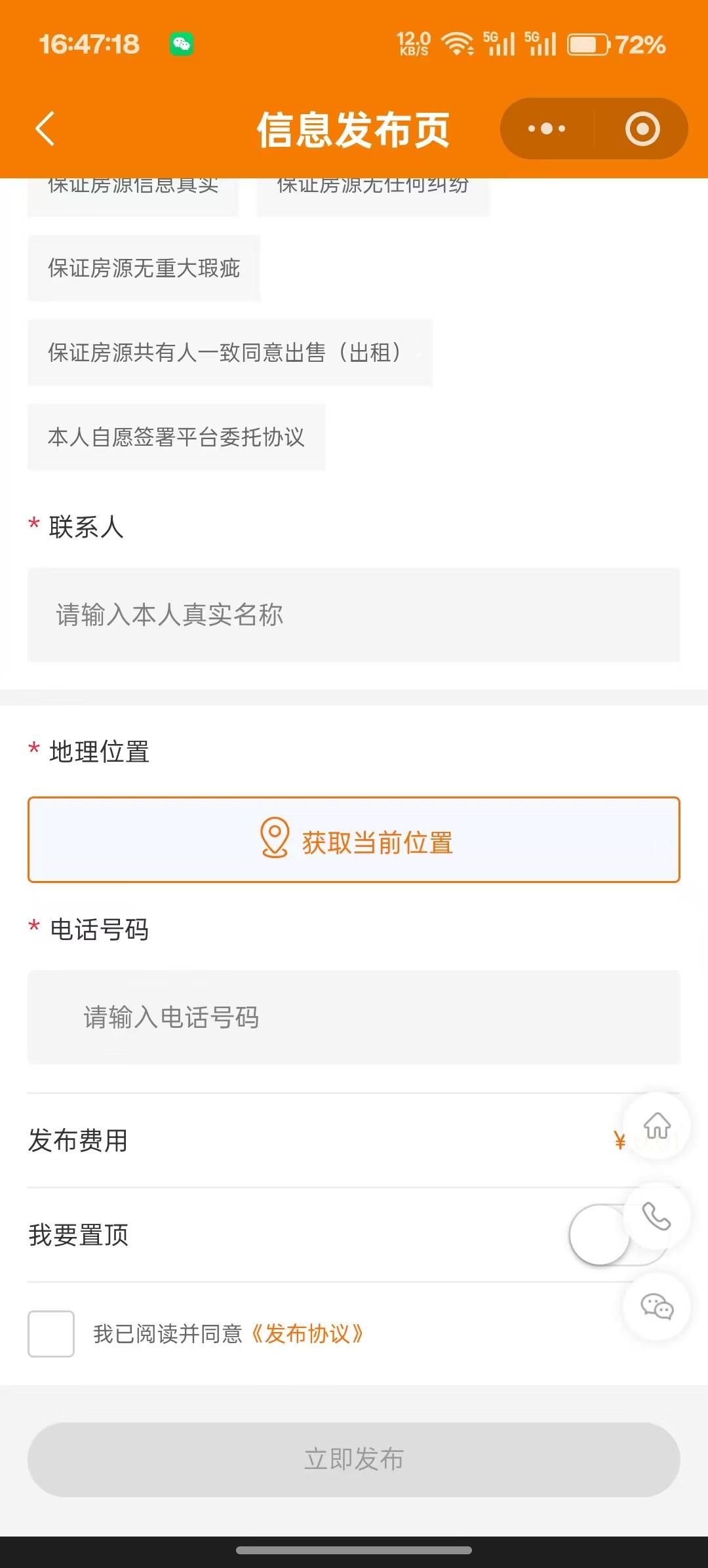目前最底下的发布费用和我要置顶的按钮容易被遮挡;此页面适合聚焦内容编辑,特殊处理此页面不显示右下角浮标。