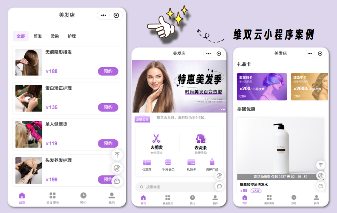 美容美发到店服务:连锁品牌通过公众号提供在线预约,客户可选择门店、服务项目、技师和时间段,支持到店支付或在线预付,减少排队等待时间。
