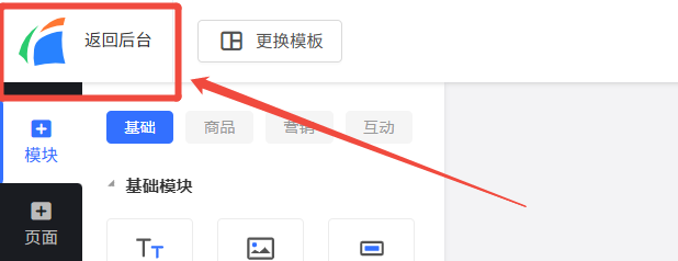 店铺“门面”装修得差不多后,点击设计页面左上角的【返回后台】。在这里进行更深度的功能配置: