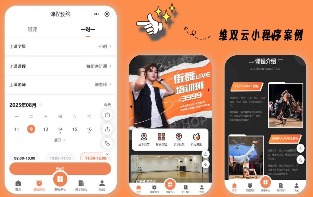 教培机构约课:教育机构通过公众号小程序实现课程预约,家长可查看教师资质、课程安排、剩余名额,选择适合时段并在线支付,系统自动发送上课提醒和课程资料。