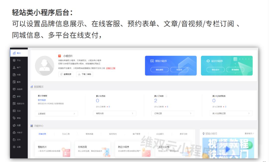配置核心功能:在对应的管理后台,设置你的服务项目/商品、支付方式等功能,你选择不同的小程序类型,会有不一样的后台功能,咱把每一种都给各位列一下: